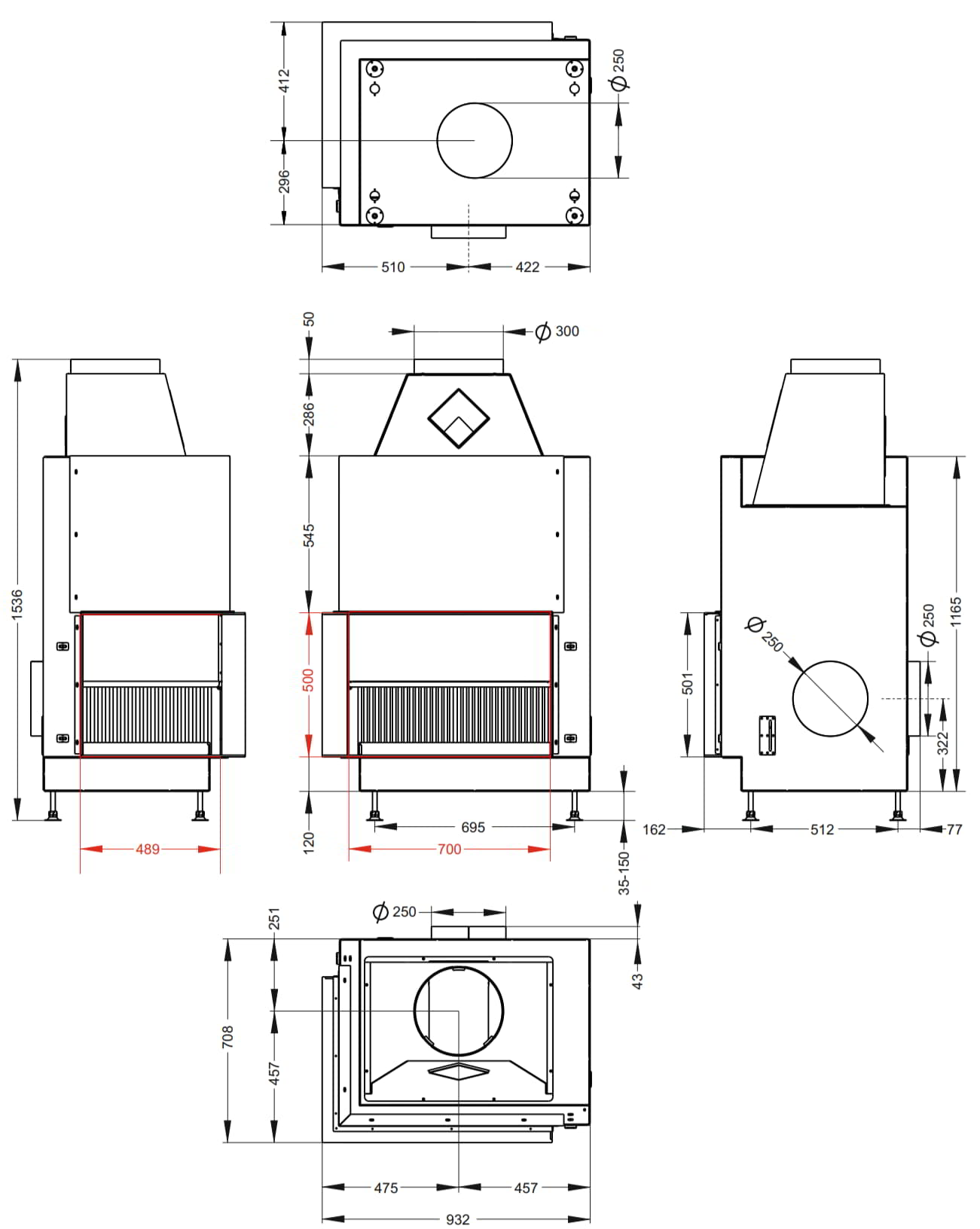 932 мм