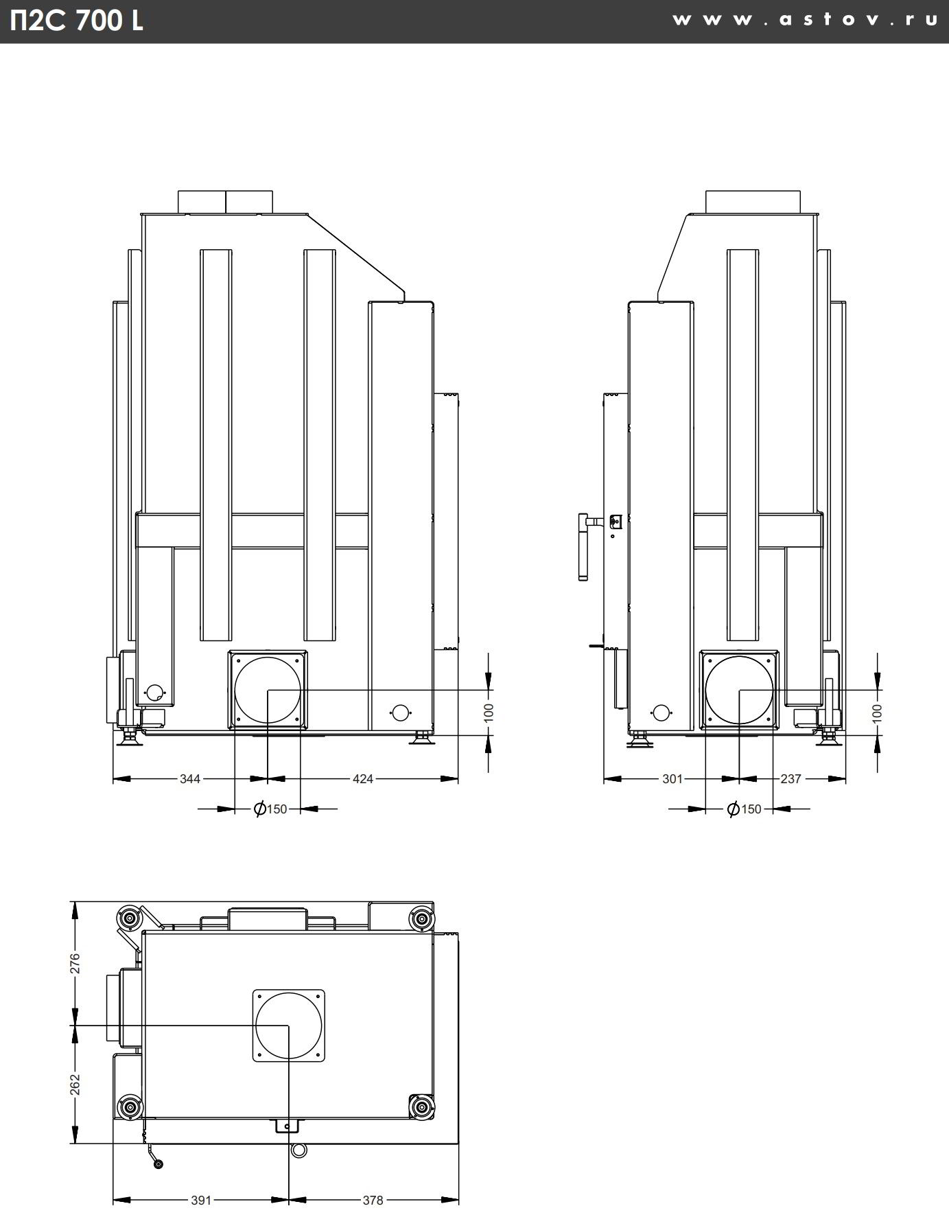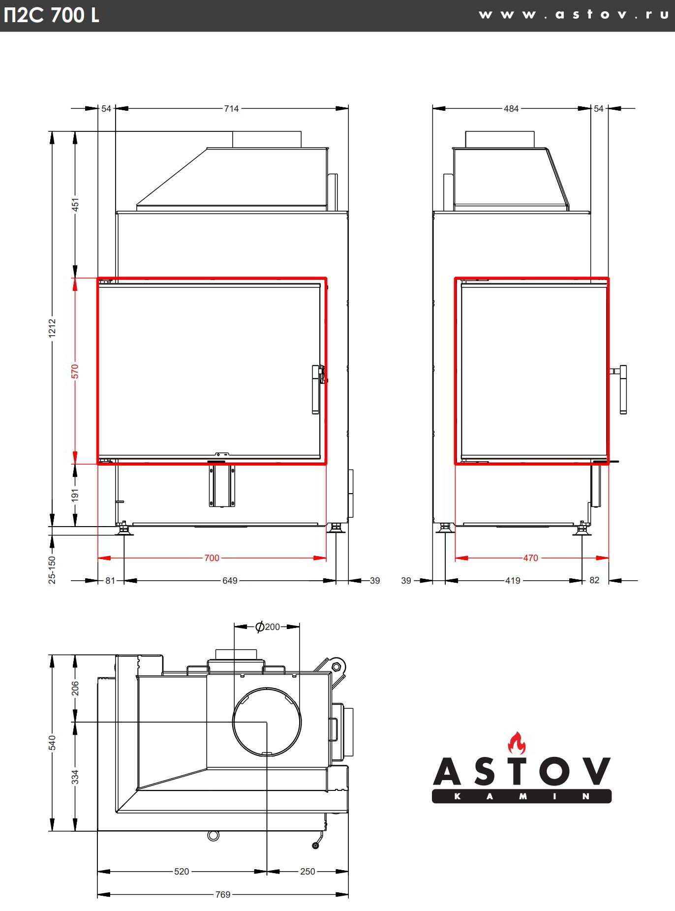 Каминная топка Astov П2С 700 L