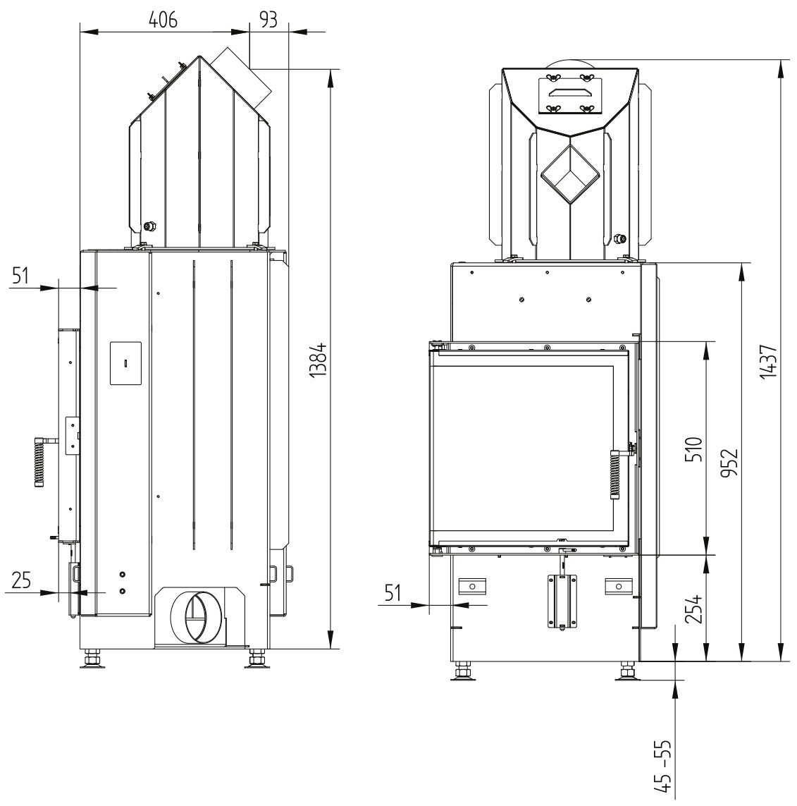 Каминная топка Hoxter ECKA 51/51/51