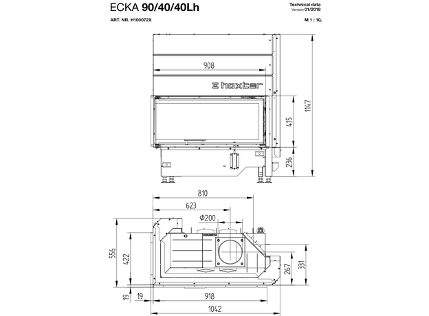 Каминная топка Hoxter ECKA 90/40/40h