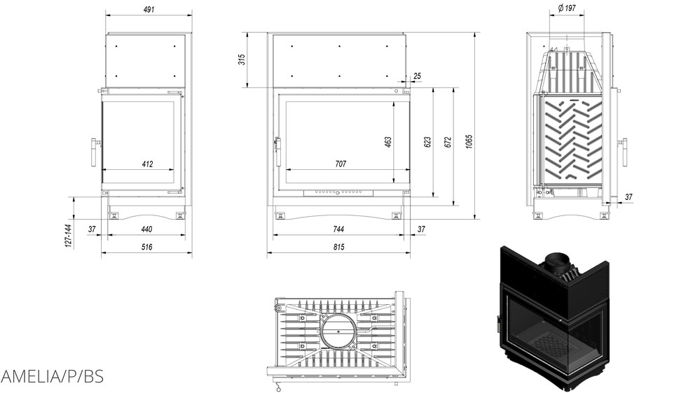 Каминная топка Kratki Amelia 25 R/BS