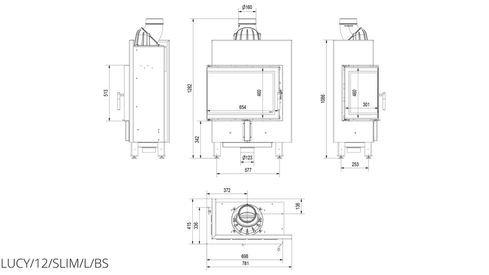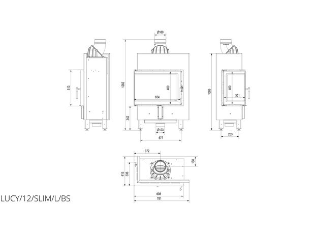 Каминная топка Kratki Lucy 12 L/BS Slim