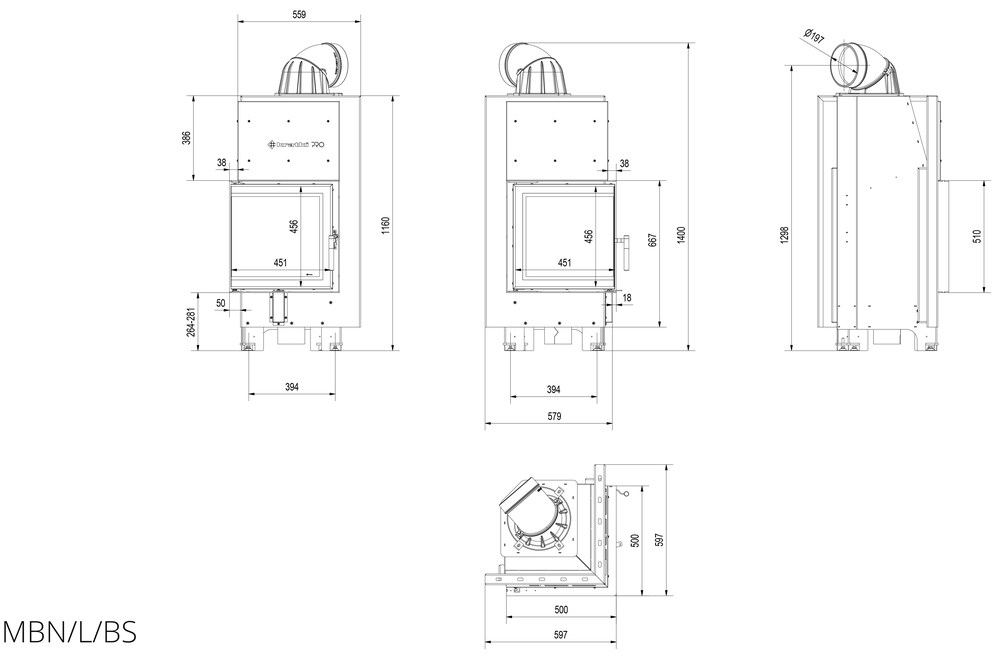 Каминная топка Kratki MBN 12 L/BS