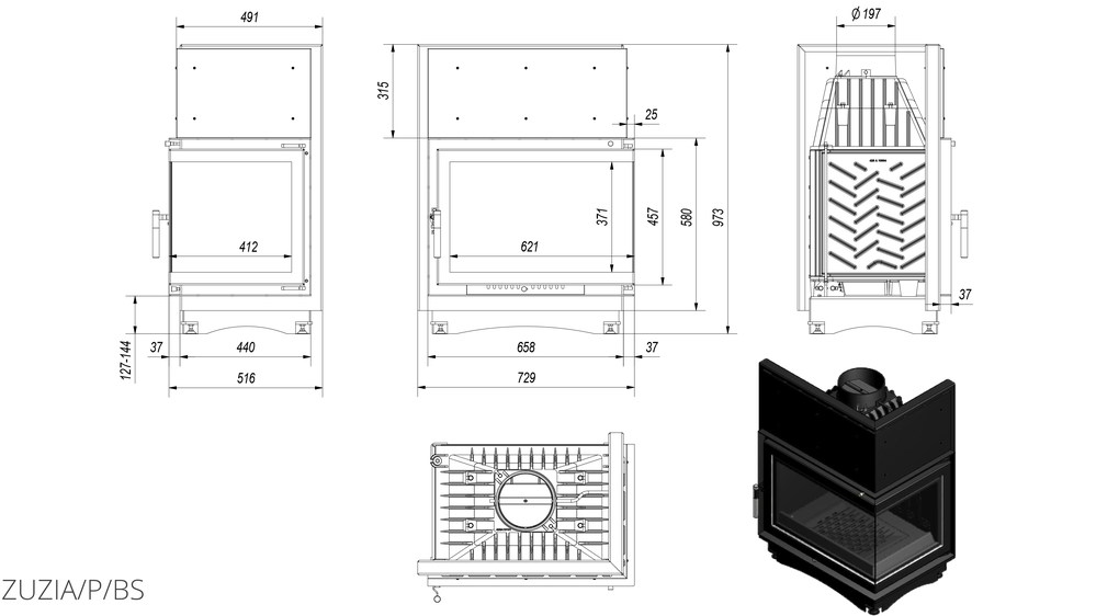 Каминная топка Kratki Zuzia 16 R/BS