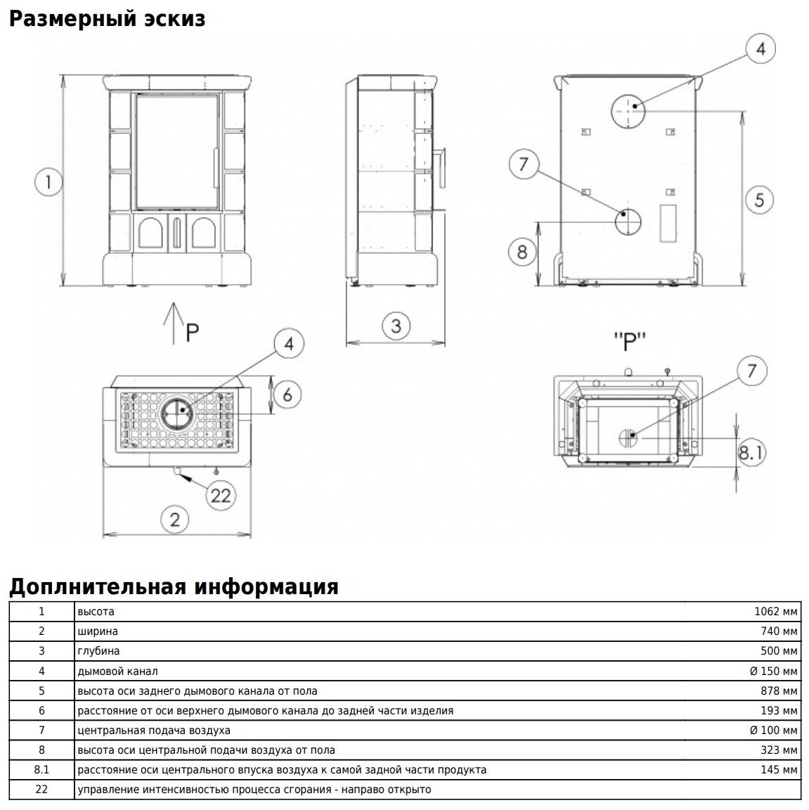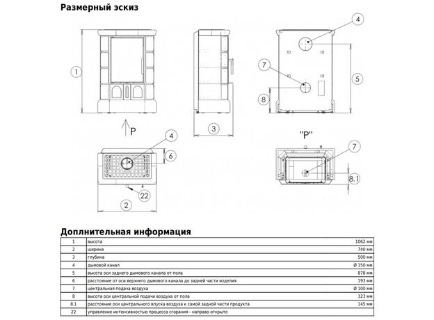 Диаметр дымохода:
