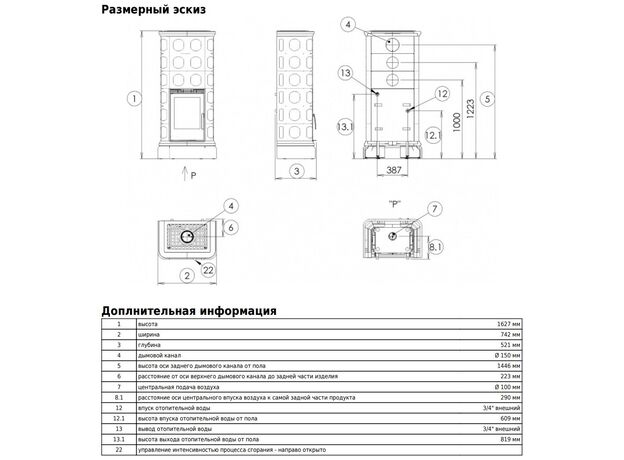 Печь-камин ABX Kaledonie KPI Комбо с теплообменником
