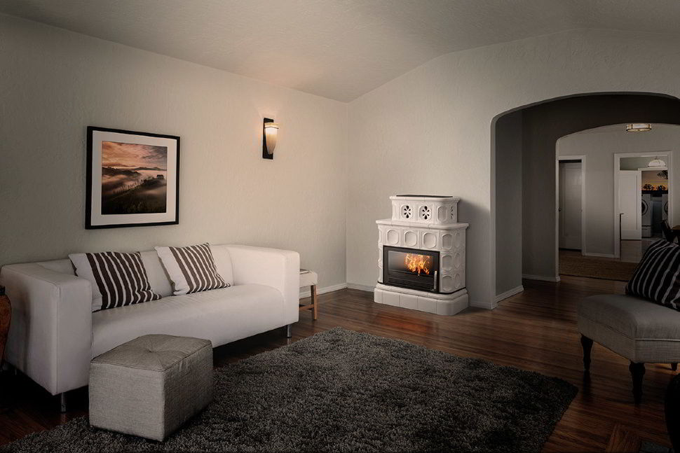 Печь-камин ABX Karelie с кафельным цоколем