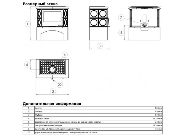 Диаметр дымохода:
