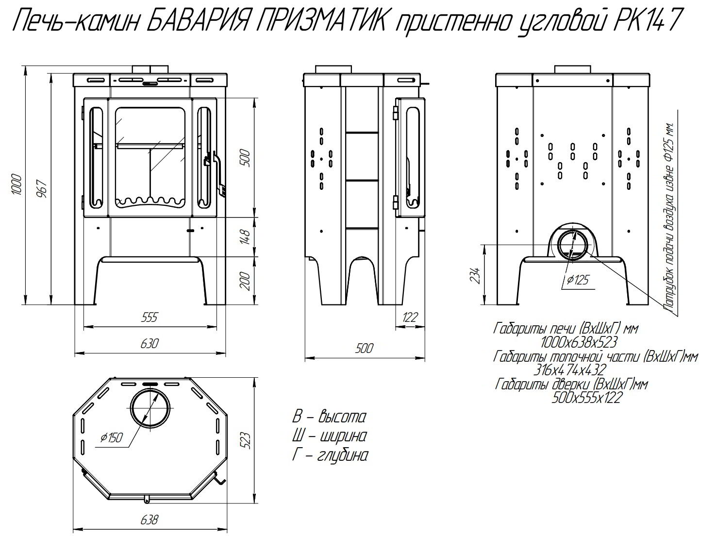 Печь-камин EcoKamin Бавария Призматик Угловая