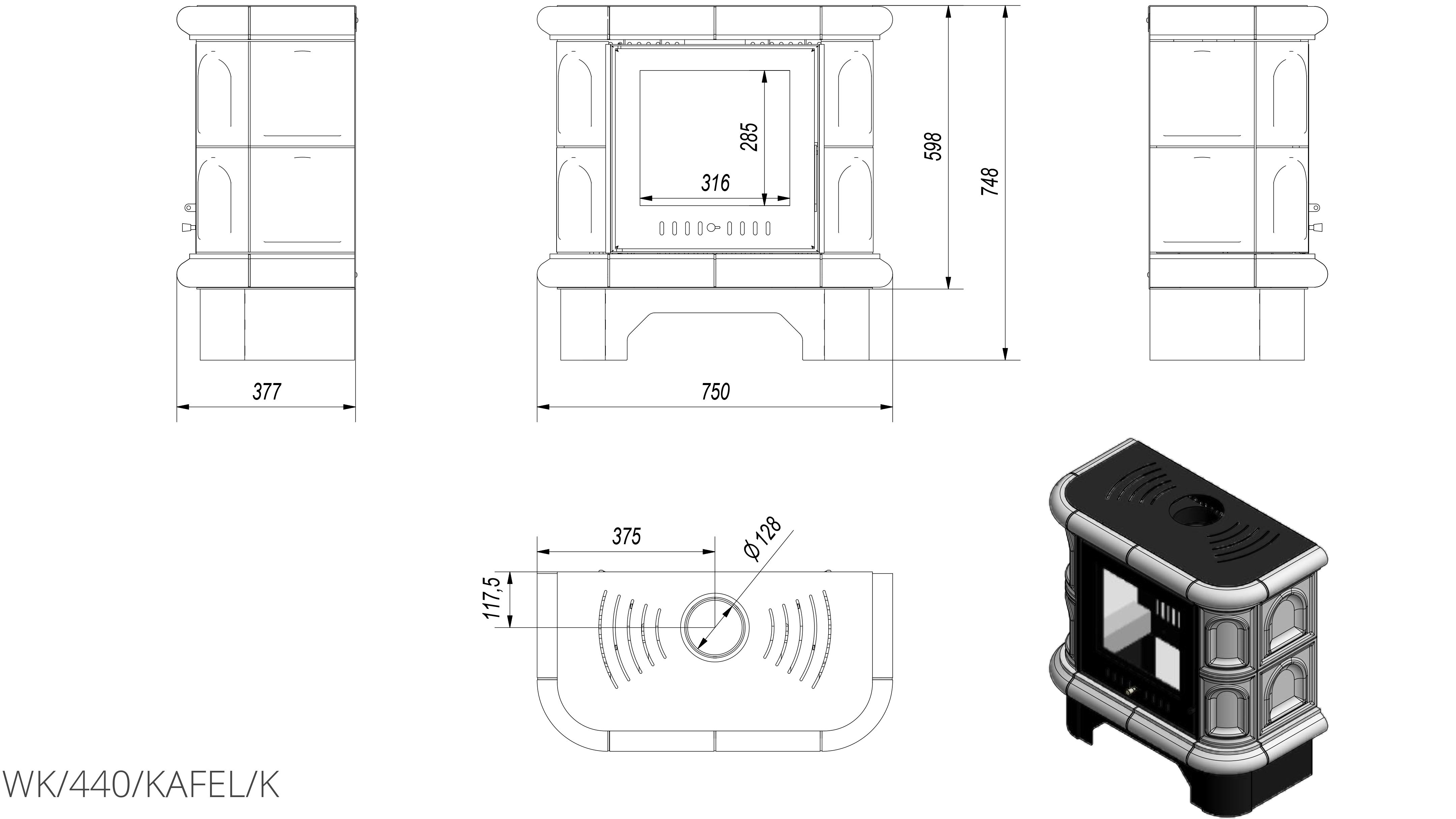 Печь-камин Kratki WK 440 kafel Cream