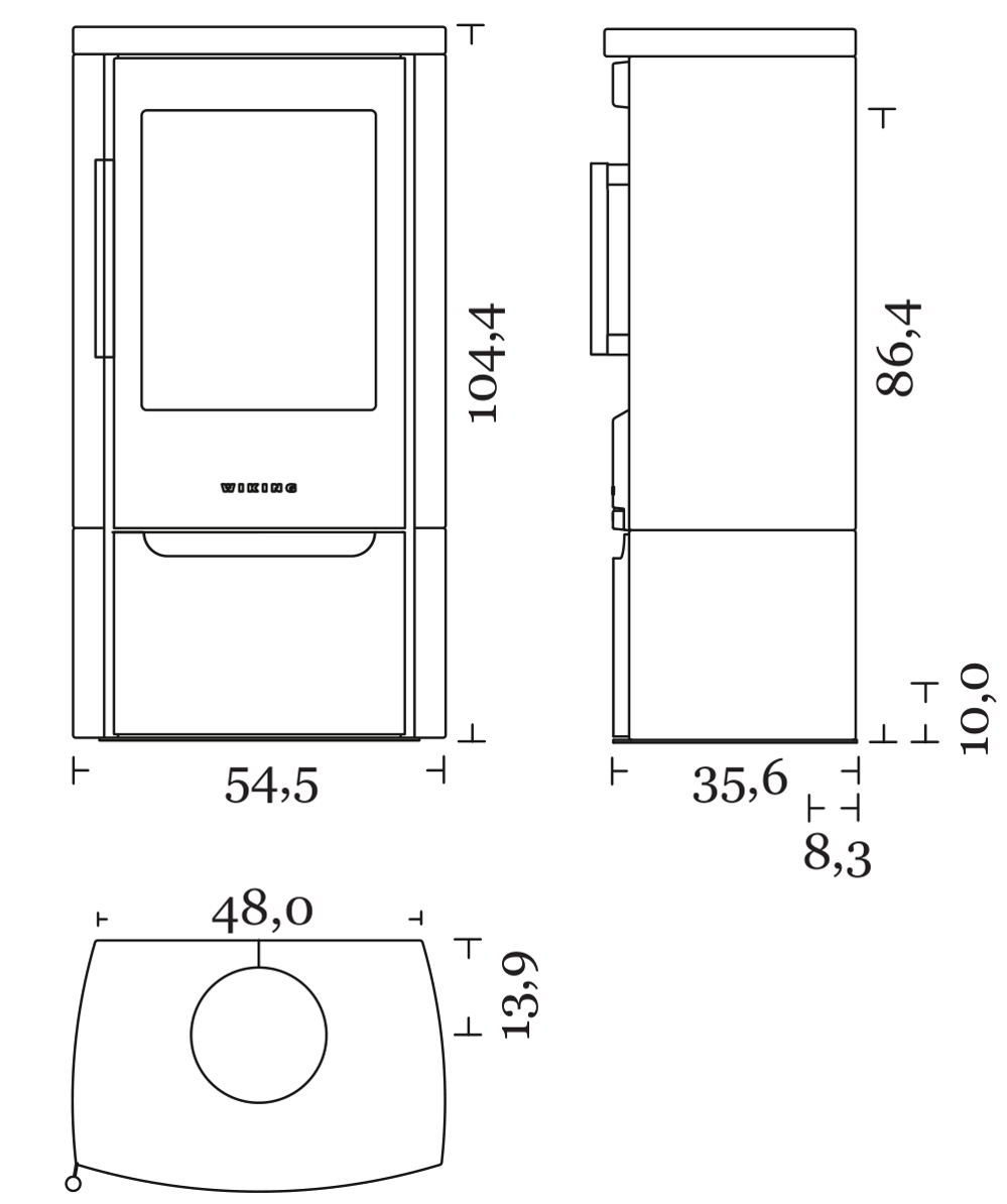 Габариты. Печь не занимает много места, не требует большого пространства для установки. При этом Wiking Miro имеет огромное остекление. Для установки печи не нужен фундамент. Её можно устанавливать на любой тип полового покрытия. В том числе на деревянные полы или на ламинат. Нижняя часть Викинг Миро не нагревается СОВСЕМ. Для защиты от возможного попадания случайных угольков на пол мы укладываем перед печью небольшой стальной или стеклянный притопочный лист.
