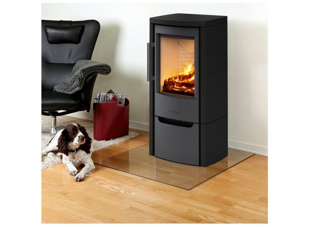 Качественная скандинавская печь с большим стеклом и умеренной мощностью.